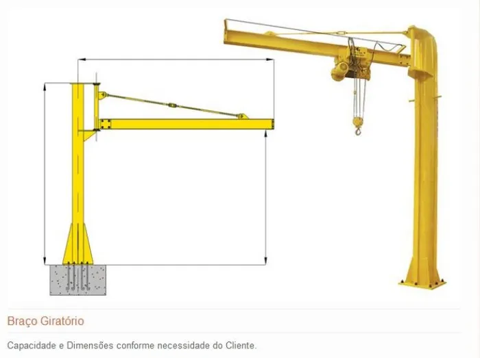 Com a capacidade de rotação eficiente, o braço giratório de carga oferece versatilidade na operação e pode ser facilmente acoplado a talhas elétricas ou manuais.