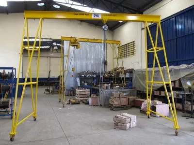 O deslocamento de cargas dentro do ambiente das fábricas, o carregamento de mercadorias em caminhões ou a troca de ferramentas em linhas de produção, como a troca e o manuseio de moldes em máquinas injetoras, movimentação de peças para usinagem, içamento de motores em oficinas mecânicas, são exemplo de operações que demandam equipamentos ao mesmo tempo resistentes e ágeis, fáceis de manobrar e com alta capacidade de levantamento de cargas. O pórtico móvel com talha é o equipamento ideal para essas ocasiões.